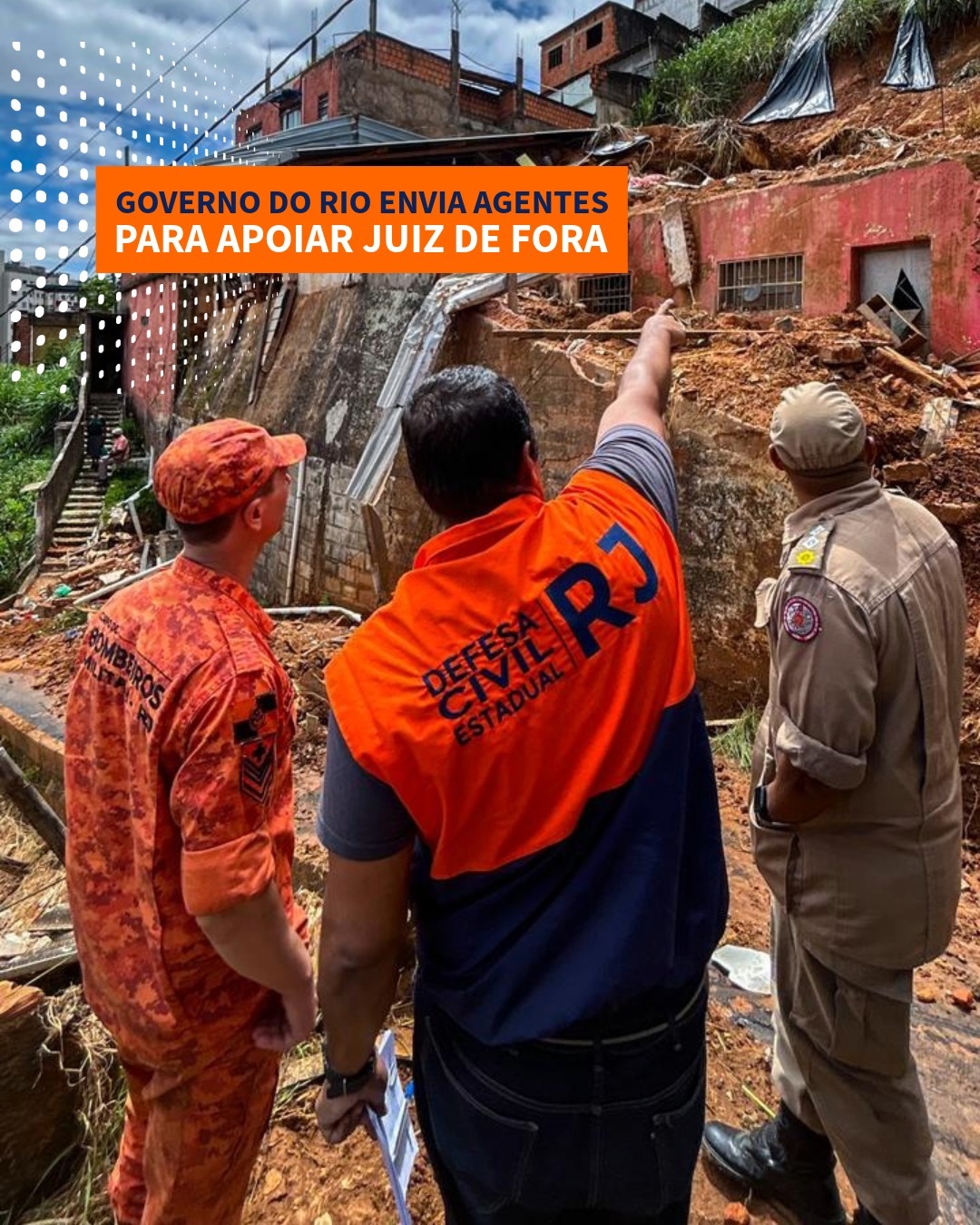Do dia 03 ao dia 05 de março, o Governo do Estado do Rio de Janeiro enviou agentes da Secretaria de Estado de Defesa Civil do Rio de Janeiro (SEDEC-RJ) para atuar em apoio ao município de Juiz de Fora, em Minas Gerais, após as fortes chuvas que atingiram a região. A Defesa Civil Estadual do Rio de Janeiro permanece à disposição de Juiz de Fora no que for necessário, em alinhamento com as autoridades locais e a Defesa Civil Nacional.