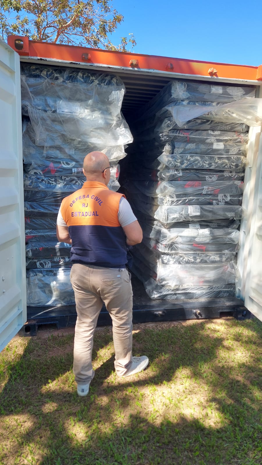 Durante a inspeção, foram conferidos colchões e kits dormitório, sendo constatado que tanto o material quanto o contêiner se encontram em perfeitas condições de uso. Após a verificação, o contêiner foi devidamente fechado e lacrado, assegurando a integridade dos itens.