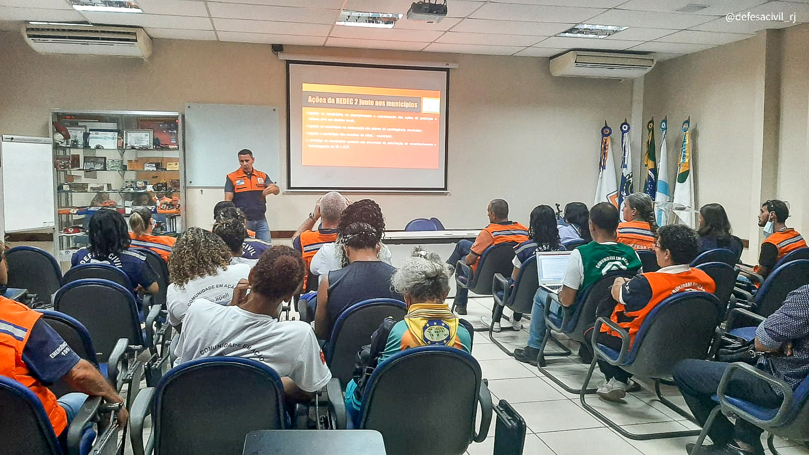 O encontro ocorreu no auditório da ASSECAMPE (Associação das Empresas de Campos Elíseos), em Duque de Caxias – RJ e estiveram presentes policiais rodoviários federais, agentes de Defesa Civil e voluntários cadastrados na Rede Bravo.