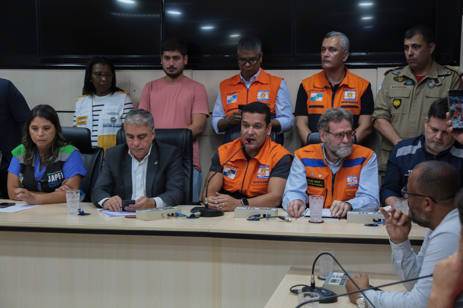O secretário de Estado de Defesa Civil e comandante-geral do CBMERJ, coronel Leandro Monteiro @leandro_monteiro1 , acompanhado do secretário de Estado de Governo, Bernardo Rossi @bernardochimrossi , e outros representantes do Governo do Estado estiveram reunidos ontem, com prefeitos de cidades afetadas pelas chuvas e representantes do Governo Federal em Japeri-RJ.