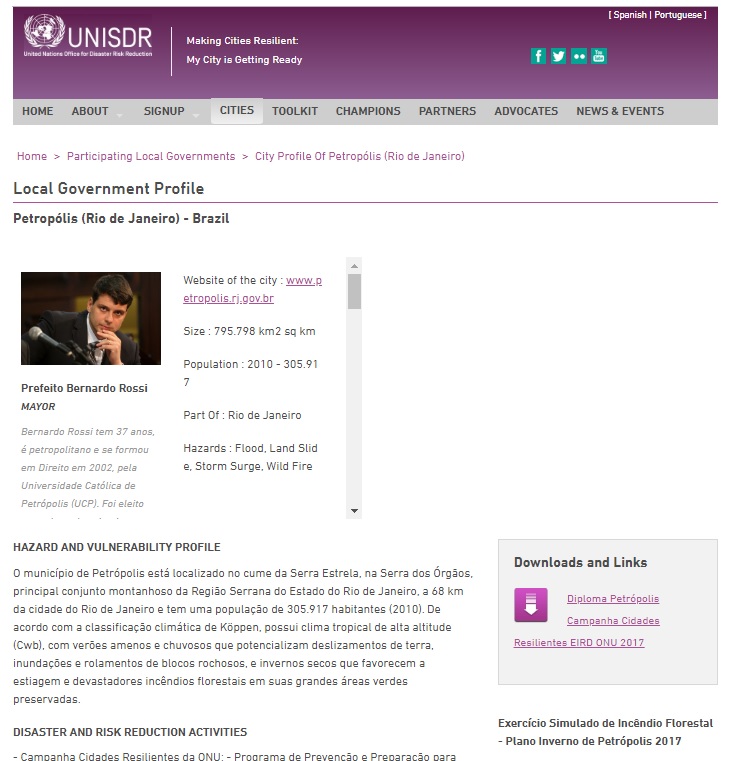 Contando apenas os que já formalizaram o pedido de adesão, contamos com 46 municípios dentro de Estado do Rio de Janeiro participando. A meta é que todos os 92 municípios participem e, com o auxílio técnico e operacional da SEDEC-RJ, possam cumprir os dez aspectos essenciais2 para a construção de cidades resilientes conseguindo não só a Certificação pelas Nações Unidas, mas, principalmente, garantindo preparação e resposta eficazes para evitarem ou minimizarem a perda de vidas em desastres.