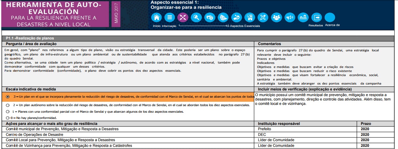 Aspecto Essencial 1: Organizar para a resiliência frente aos desastres.