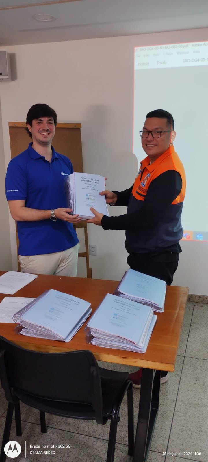 Durante o workshop, houve a entrega do Plano de Ação de Emergência (PAE) aos municípios participantes, à Redec e uma via para a Secretaria de Defesa Civil (SEDEC), representada pela CAACRe.