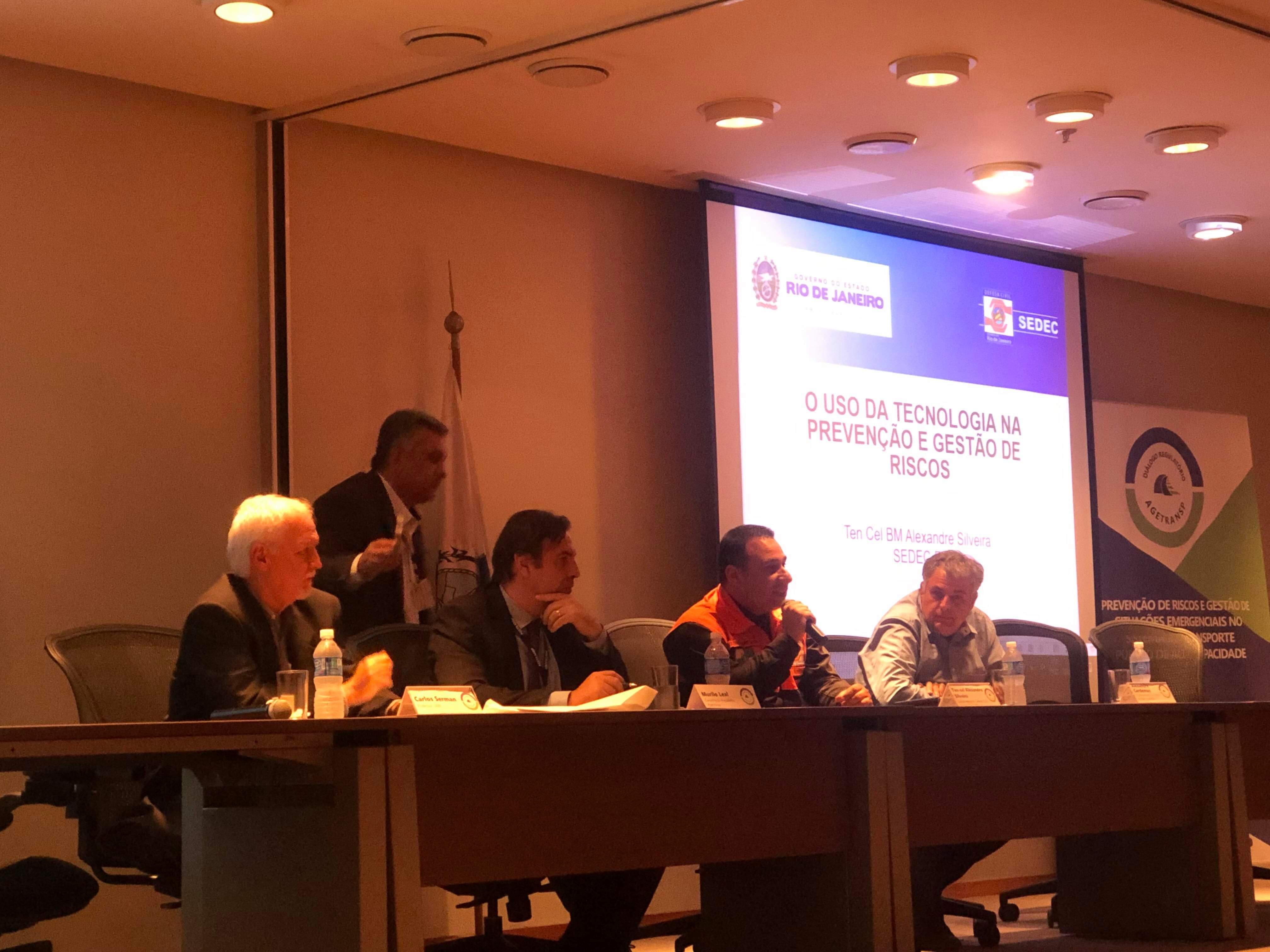 A Defesa Civil Estadual marcou presença, no dia 22 de maio, no seminário “Diálogo Produtivo: prevenção de riscos e gestão de situações emergenciais no sistema de transporte público de alta capacidade”. A iniciativa foi promovida pela Agetransp (Agência Reguladora de Serviços Públicos Concedidos de Transportes Aquaviários, Ferroviários e Metroviários e de Rodovias do Estado do Rio de Janeiro). Cerca de 200 pessoas participaram do evento, realizado no auditório da Procuradoria Geral do Estado (PGE), no Centro do Rio.