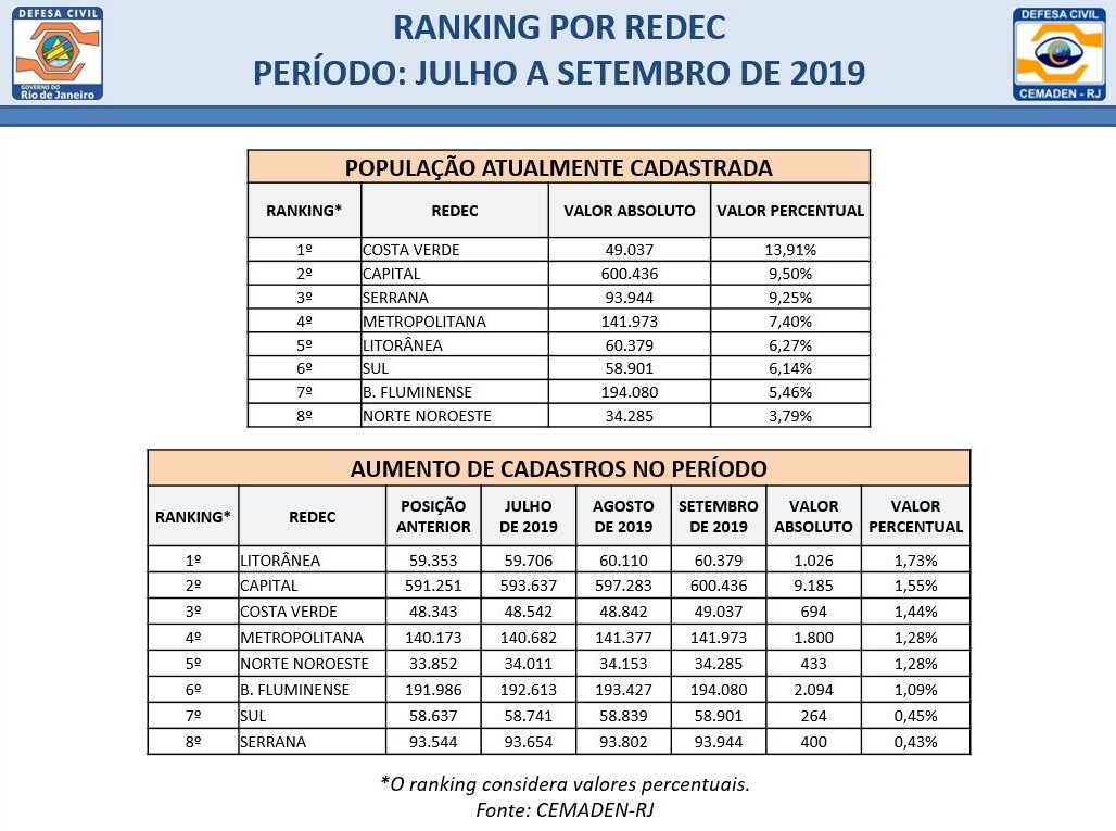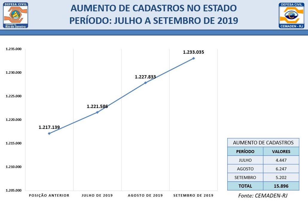 A ferramenta permite aos gestores de Defesa Civil a antecipação de alertas em situações adversas em todo o território fluminense. De julho a setembro, foram registrados aproximadamente 15 mil novos cadastros, em relação ao quantitativo computado nos seis primeiros meses do ano. Atualmente, o serviço conta com 1.233.035 CEPs inscritos.