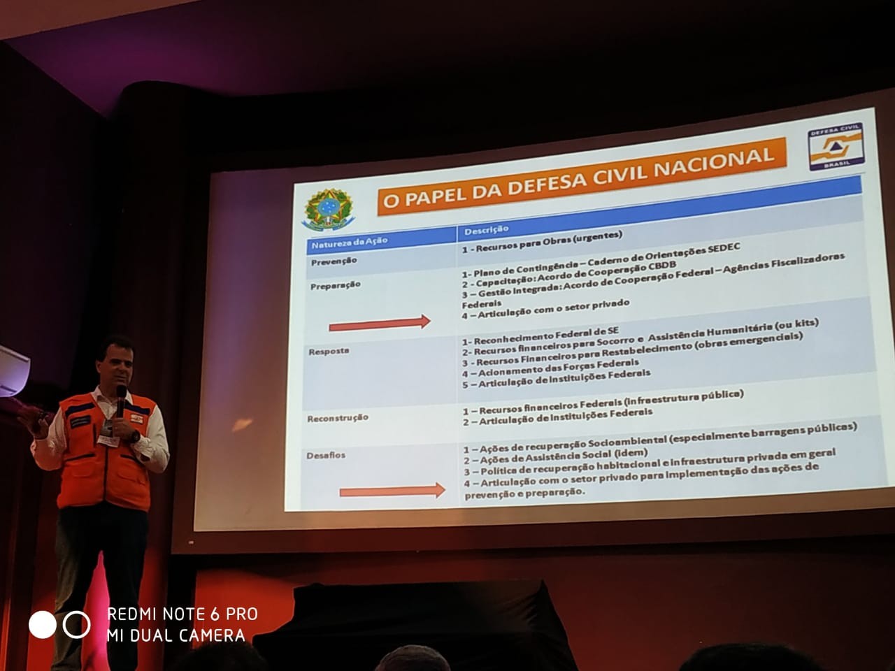 As palestras abordaram, entre outros assuntos, a importância da Política Nacional de Segurança de Barragens (PNSB); o funcionamento do sistema de alerta (sirenes); a relevância dos estudos de ruptura para a preparação em caso de eventual desastre; e a responsabilidade de todos na mitigação dos danos. Participaram do encontro empreendedores do setor e representantes federais, estaduais e municipais de Defesa Civil.