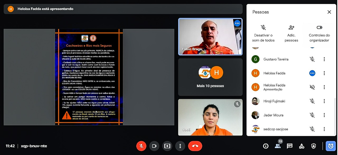 A reunião foi realizada na modalidade online e o assunto abordado foi Prevenção de Afogamentos em Piscinas, Rios e Cachoeiras.