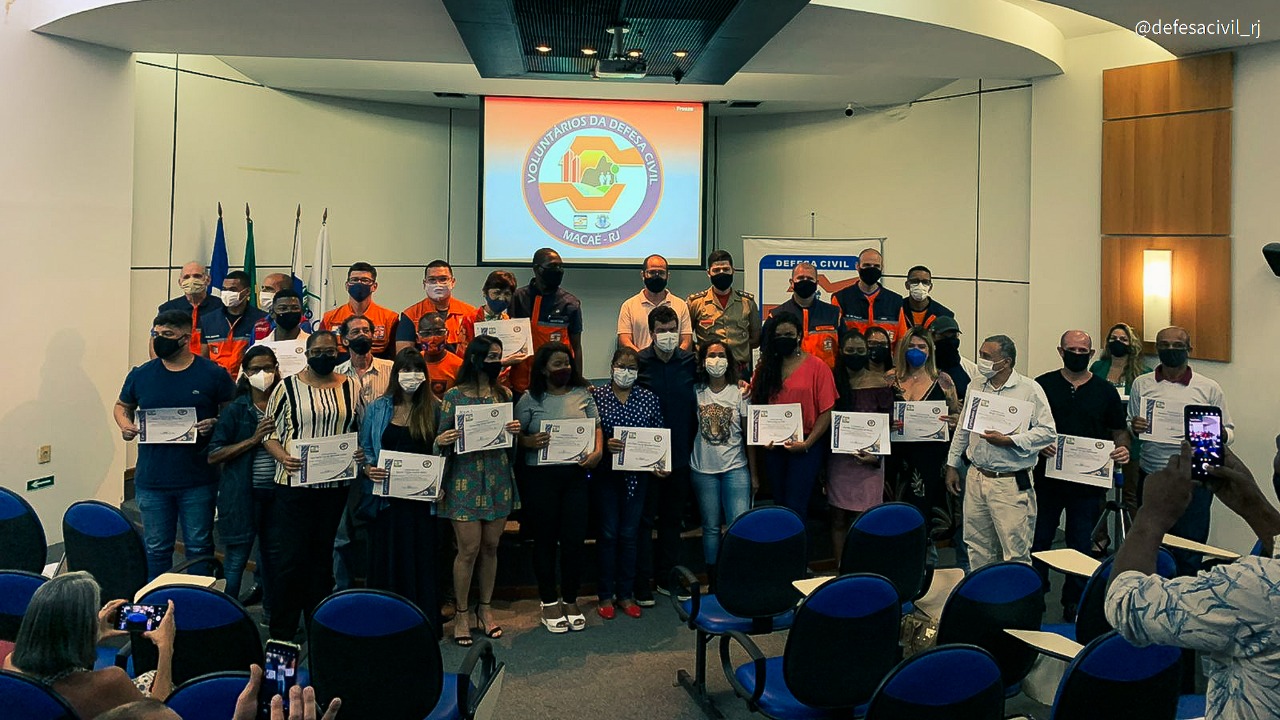 Nesta quinta-feira (18.11) foi realizada uma cerimônia para recebimento do certificado do MCR2030, além da formação e certificação de 21 voluntários de defesa civil (Turma 2021) para multiplicação do conhecimento sobre proteção, prevenção e desastres naturais.
