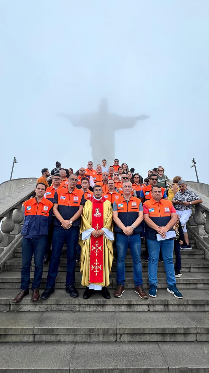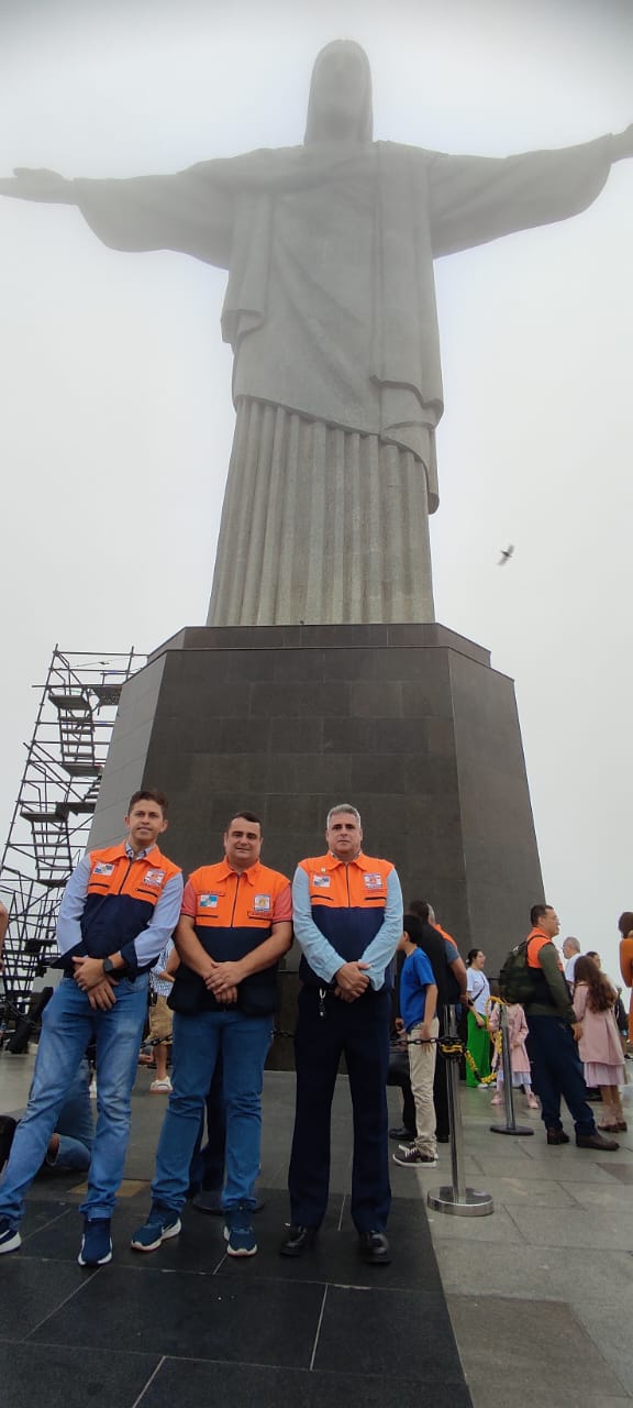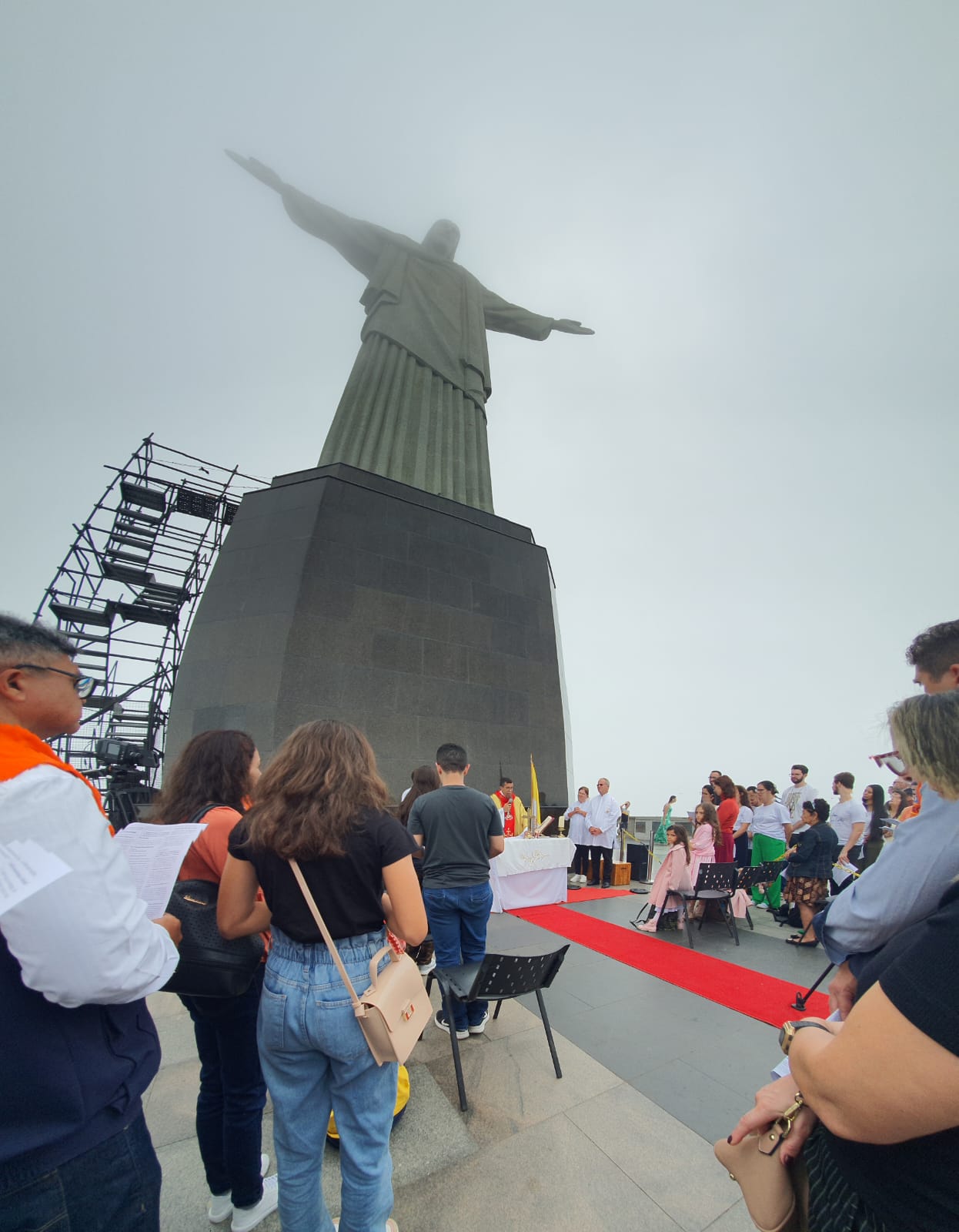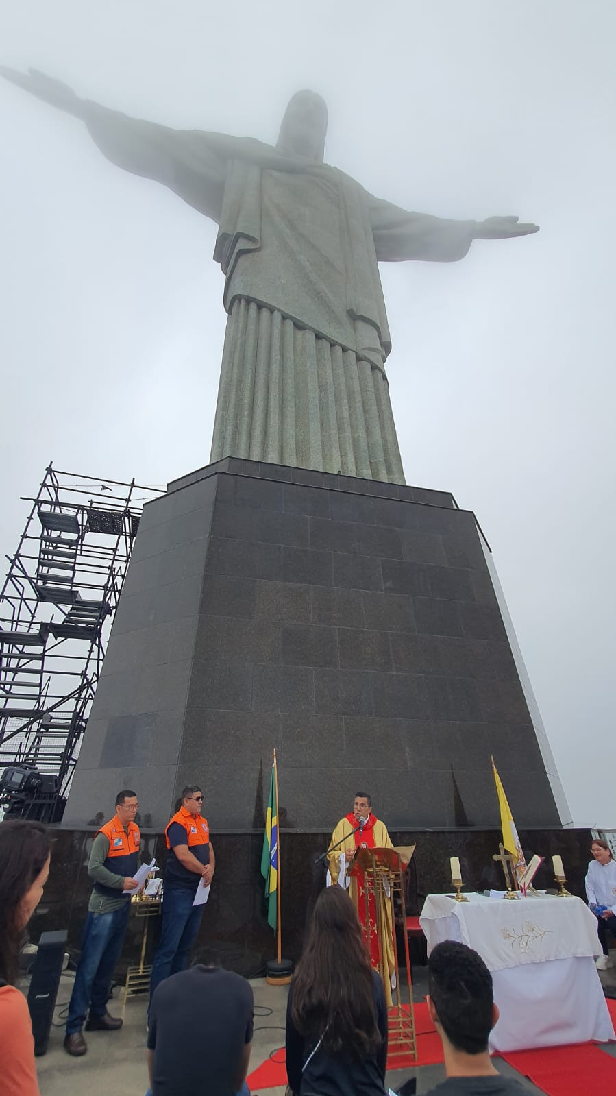 O evento foi realizado no Cristo Redentor, cartão postal do Rio de Janeiro, sob um tempo bastante nublado.