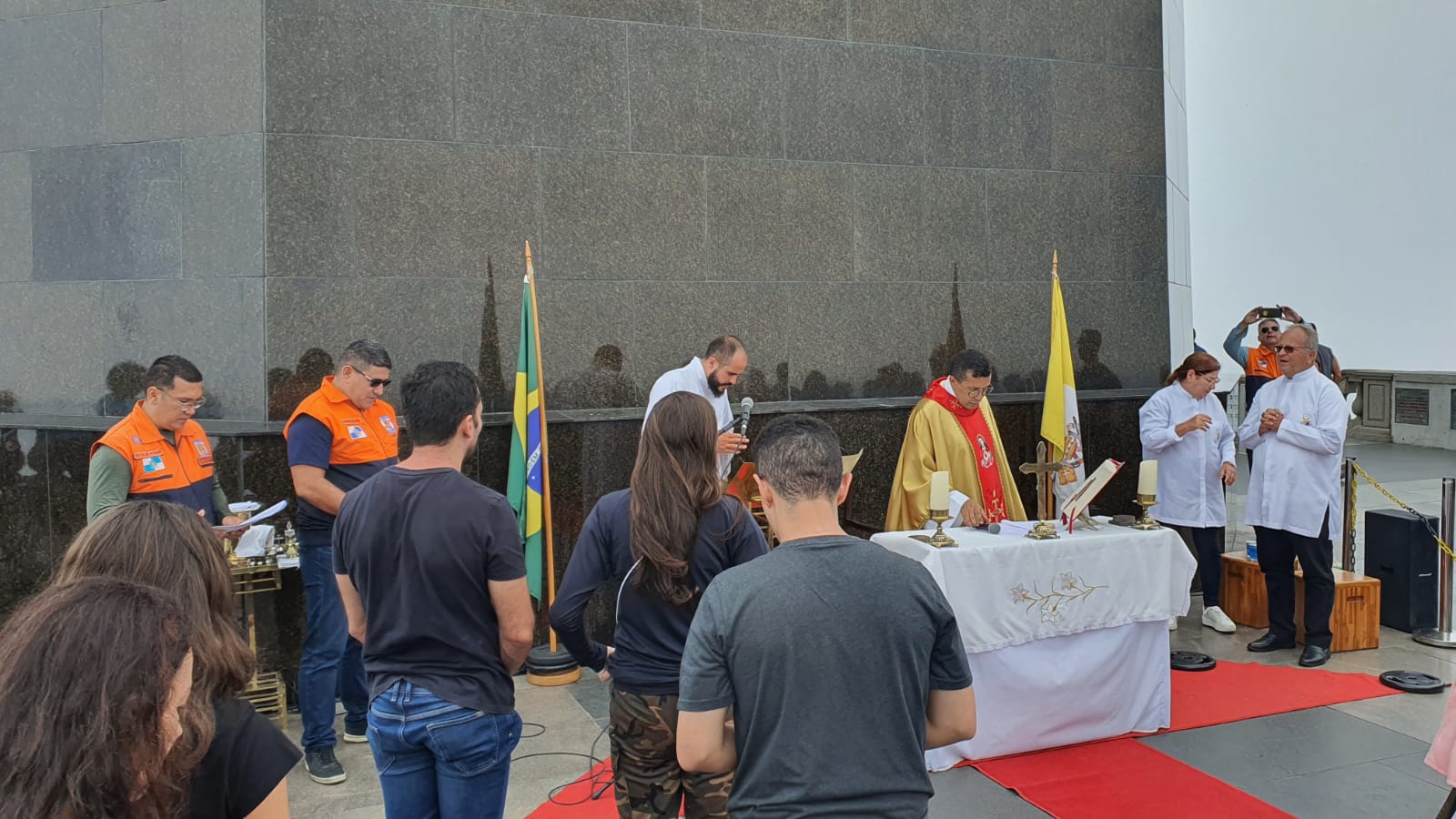 A cerimônia foi dirigida pelo padre Wagner Toledo, tenente-coronel capelão do Corpo de Bombeiros e contou com a participação de diversos agentes de defesa civil.
