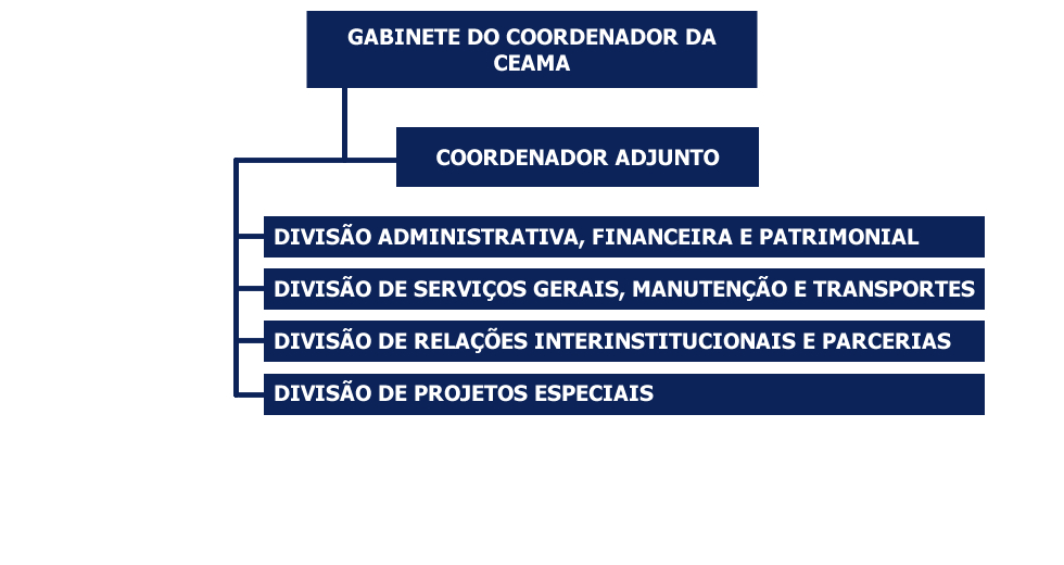 Art. 85º - A estrutura organizacional da A Coordenação Especial para Assuntos Ambientais e de Cidades Resilientes (CEAACRe) é composta da seguinte forma: 1. Coordenação 1.2. Coordenadoria Adjunta 1.2.1. Divisão Administrativa, Financeira e Patrimonial (DAdFinP) 1.2.2. Divisão de Serviços Gerais, Manutenção e Transportes (DSGMTransp) 1.2.3. Divisão de Relações Interinstitucionais e Parcerias (DRInP)