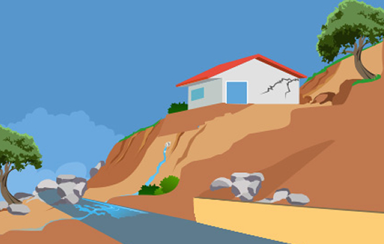 - Movimentos de solo, rochas ou detritos encosta abaixo.